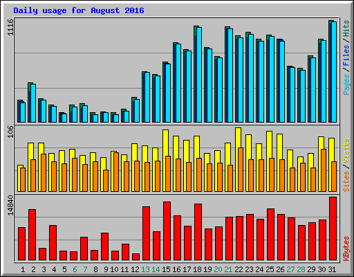 Day | Hits | Files | Pages | Visits | Sites | KBytes | ||||||